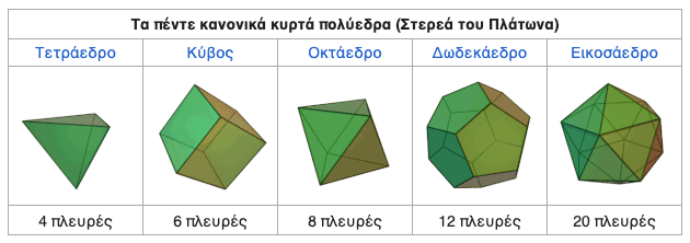 5]Ο Πλάτων αναφέρει στον Τίμαιο 55,<<αλλά επειδή ήταν δυνατή και πέμπτη συναρμολόγηση τριγώνων την χρησιμοποίησε όταν τελικά αυτός σχεδίασε τον Κόσμον>>.
